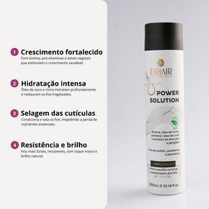 Transforme seus fios com o Condicionador Power Solution – Força e Crescimento! Esta fórmula inovadora é enriquecida com Pro Vitamina A, Pro Vitamina B5 e Biotina, que promovem o fortalecimento e o crescimento saudável dos cabelos, reparando fios fragilizados e proporcionando flexibilidade. 🌱💪
