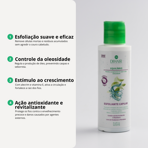 O Esfoliante Capilar Equilíbrio DIHAIR promove uma esfoliação suave no couro cabeludo, removendo impurezas, células mortas e o excesso de oleosidade sem agredir os fios. Com fórmula enriquecida com Extrato de Alecrim e Vitamina E, ativa a circulação sanguínea, estimula o crescimento capilar e previne o surgimento de caspa. Ideal para reequilibrar raízes oleosas e pontas secas, proporcionando limpeza profunda e sensação de frescor. ✨🧖♀️
