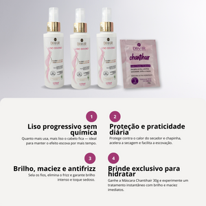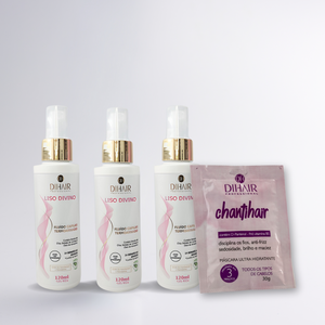 Kit Fluido Protetor Térmico Liso Divino 120mL 3 UND + Brinde Máscara Chantihair 30g