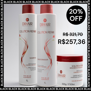 O Kit Solution Repair Dihair é um tratamento profissional completo com tripla ação — nutrição, hidratação e reparação — ideal para cabelos danificados ou quimicamente tratados. Composto por shampoo, máscara e condicionador, o programa atua profundamente nas zonas mais sensibilizadas da fibra capilar, restaurando a saúde dos fios desde o interior. Sua fórmula exclusiva com D-Pantenol e Ácido Láctico fortalece, condiciona e protege os cabelos contra novas agressões externas e químicas. ✨💧