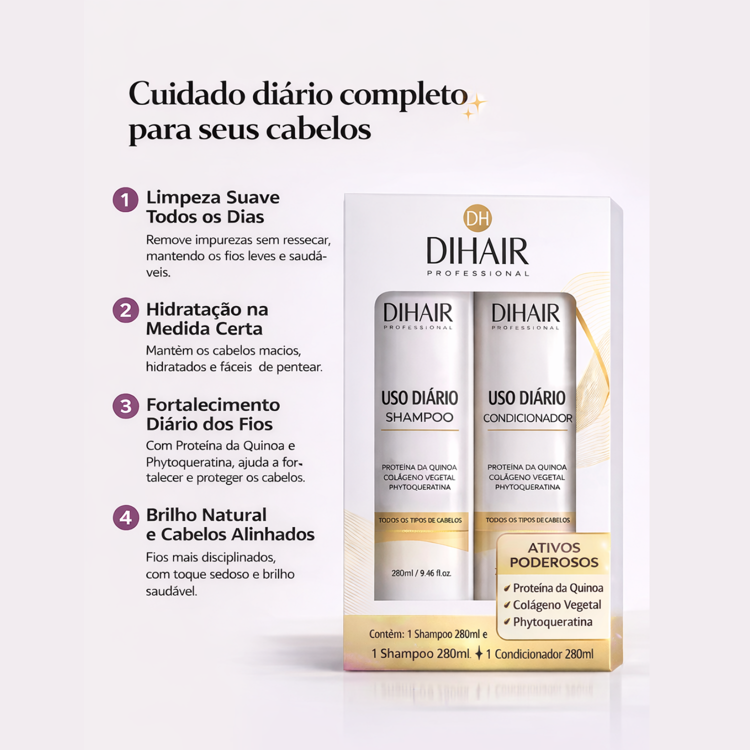 Kit Uso Diário Shampoo 280ml + Condicionador 280ml – DIHAIR