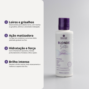 Diga adeus ao amarelado e revele um loiro radiante com o Shampoo Blonde Solution! Com D-Pantenol e Queratina na fórmula, ele limpa suavemente os fios enquanto neutraliza as tonalidades indesejadas causadas pela oxidação. Ideal para cabelos loiros, grisalhos ou com mechas, promove efeito platinado, hidratação profunda, força e brilho intenso desde a primeira aplicação! 💜💆♀️✨